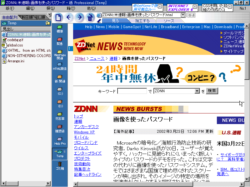 「紙」は、PC上で情報の整理・活用を簡単かつ汎用性を失わない状態で行えるよう、洛西一周さんによって開発されたスクラップブックソフトです。