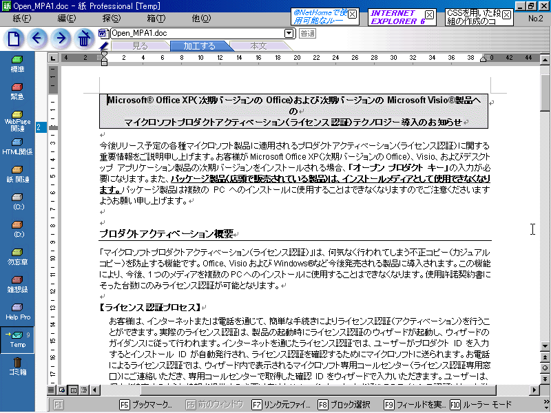 更に有料の「紙 copi」では、Word・Excel・一太郎・PDF・DocuWorks文書の閲覧(*2)、HTMLファイルのWYSIWYG編集、複数階層でのデータ管理・検索などが可能です。